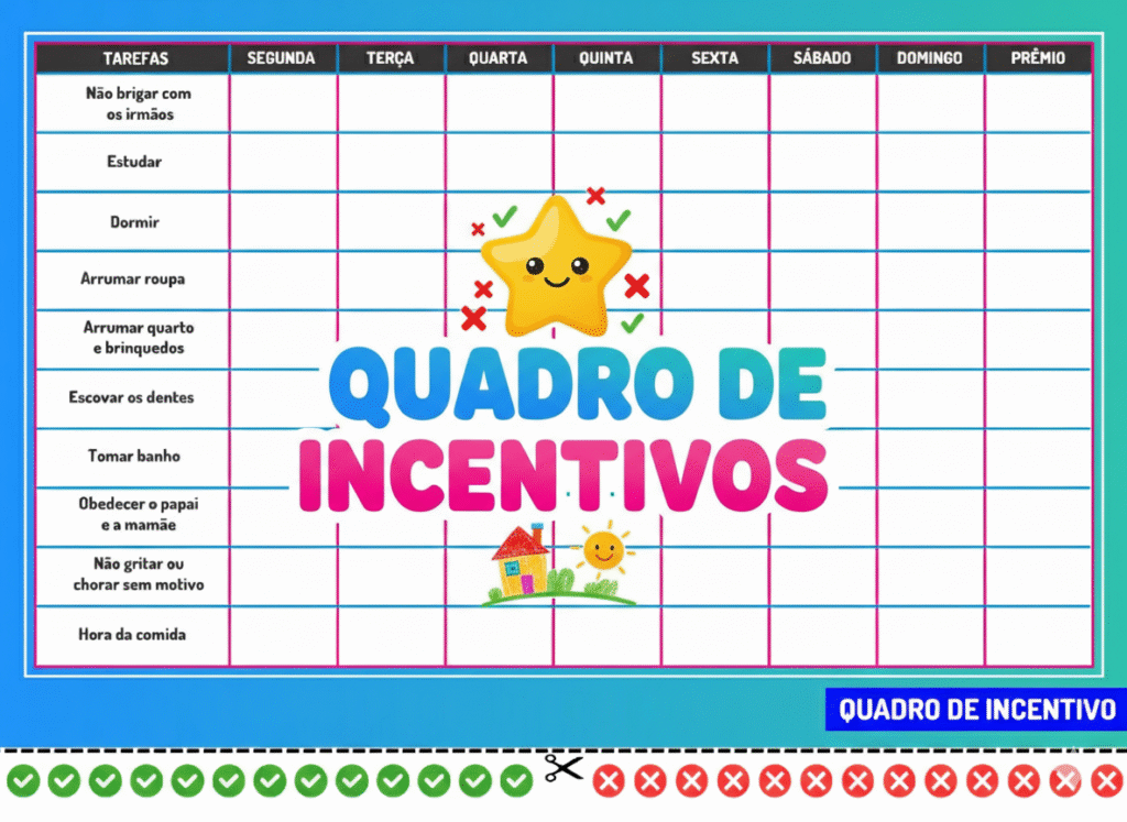 Uma ferramenta prática para ensinar seu filho a seguir tarefas diárias de forma divertida e visual. No final da semana, escolha um brinde ou recompensa para reconhecer o esforço do seu filho. Isso ajuda a reforçar o bom comportamento e transforma a rotina em algo leve e divertido.